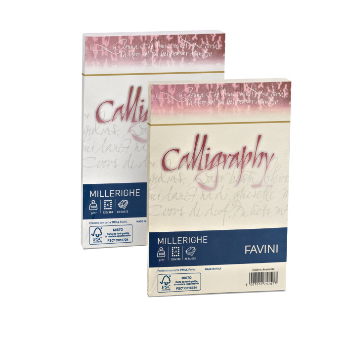 BUSTA ADESIVA CON STRIP DA 100 GRAMMI IN CARTA CALLIGRAPHY CON TRAMATURA MILLERIGHE. FORMATO 120X180MM.